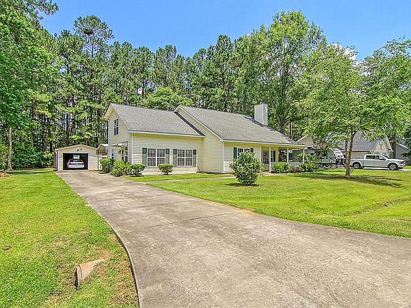 Welcome to Pimlico, a unique riverfront community with a private boat launch and dock for residents. Don't own a boat? Then enjoy the two private fishing lakes, walking trails, play park, or basketball court. Or just relax on the swing of your new pebble coated front porch. This one owner home had the garage converted to a HUGE Great room at the time of construction. There is an additional Living Room and Dining Room on the opposite side of the home. The Living Room features a gas fireplace and access to the Sunroom and Front Porch. The laundry room and guest powder room are accessed off the Dining area. The kitchen features a TON of cabinets and counter space with room for a table or island. The master bedroom is located downstairs with a spacious walk in closet and ensuitebathroom with a linen closet and combo shower/tub. Upstairs there are two generous secondary bedrooms and a full bathroom. Both bedrooms feature dual closets, and one has access to attic storage. There is a large finished room over the Great room (original floor plan FROG) which could be used as a 4th bedroom, office, or playroom. There is a detached carport with shelving, a separate shed, and two metal carports for sheltering any lawn equipment or toys, or creating a great outdoor entertaining space. There is a fig tree, pear tree, gardenias, azaleas, crate myrtles, and a tulip tree. Some big ticket items have been replaced in recent years - roof 2019, windows 2020, hvac 2020-2021, and pebble coating on the front porch 2023. The interior is clean and in good condition and ready for your personal touch. There is no HOA in Pimlico but there is a Civic Club with an optional $25 annual fee and a cost of $125 if you want to purchase a boat landing key. This golf cart friendly neighborhood has a newsletter for residents and frequent neighborhood events. Pimlico is conveniently located between Summerville and Moncks Corner. Tired of the strict homeowner regimes which prohibit you from parking your boat in your driveway or having a commercial logo on your car? Then Pimlico is the neighborhood for YOU! Sellers offering $10,000 credit towards buyer's closing costs!
