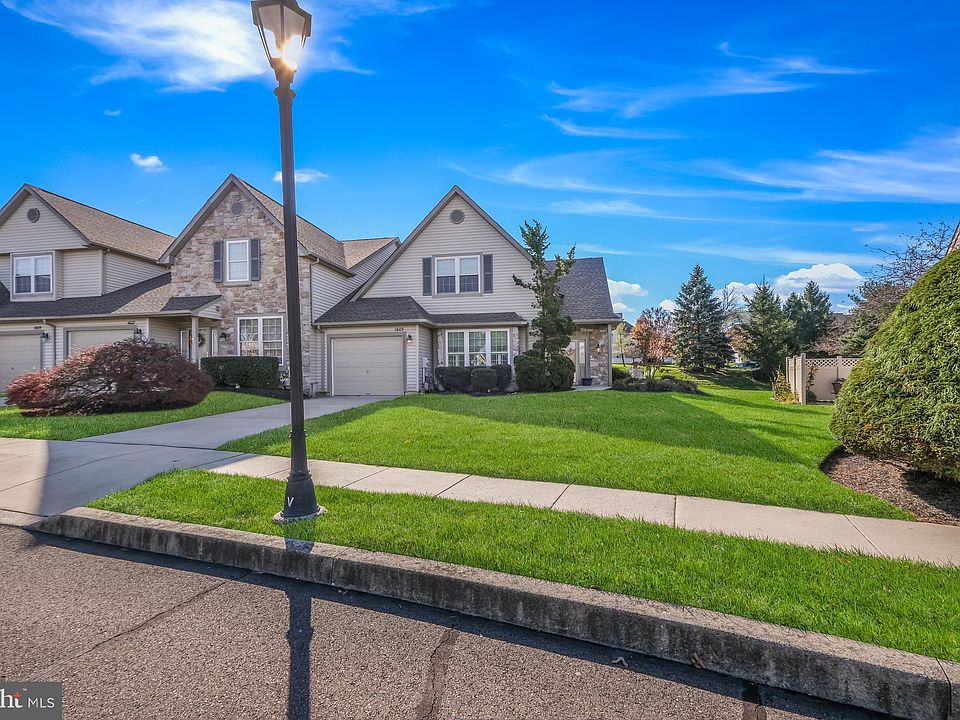 Easy one floor living at it's best. The beautiful architectural features of Yorktown will impress you from the front door. Nine foot ceilings on the first floor with beautiful tray ceiling accents. This welcoming foyer includes a large double closet and opens into the wonderful Great room with built-in shelving and large 9 foot sliding door to the patio. The spacious kitchen features 42" cabinetry, granite countertops and newer appliances. The colorful backsplash compliments the room. You will enjoy your morning coffee by the large triple window looking over the front lawn. The one car garage enters the home at the laundry room hallway. In the rear of the house you will be impressed by the massive Owners Bedroom, large triple window and two walk-in closets. The Owner's bath has been beautifully updated with new Tile, Vanity with a waterfall faucet and a large 5' shower. The main hallway also includes additional built-ins to show off treasured photos. The 2nd bedroom includes a large double closet and the Hall Bath completes the first floor. Upstairs is a wonderful retreat for overnight guests and includes a very spacious bedroom and nicely updated full bath. The mechanical room offers additional storage and a work table. This home offers many upgrades that will set your mind at ease. New windows, new HVAC, newer carpet, new storm door, Electric retractable awning. So many great features will make this the perfect place to call home. Enjoy the wonderful atmosphere of the Yorktown Community, with Clubhouse and walking trail through the adjacent township park. Just a short drive to Doylestown, Peddlers Village and New Hope. Come see all this home has to offer.