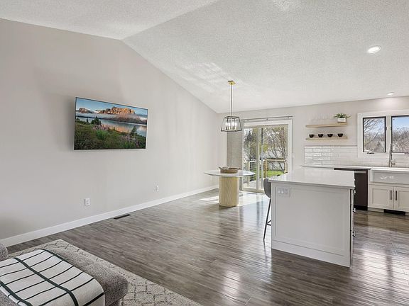 Stunning home in Rosemount! Split level home plan includes two upper bedrooms, vaulted ceilings, and an owner's suite with a bathroom entry. Elegant kitchen with new alabaster cabinets, stainless appliances, large island, and a farmhouse sink. Lower level rec room and third bedroom. Basement walkout and lookout windows make it an incredible space that is filled with natural light. Excel Way is located near shopping, restaurants, and in the award winning 196 school district . A heated two car garage and an oversized driveway. No HOA Fantastic location with easy access to shopping, Home Includes many upgrades including new durable floors upstairs and downstairs, peaceful dove colored walls, floating vanity, led mirrors, cedar deck, quarts island and countertops, Kitchen Backsplash, Gutters, Blinds, Garden beds, Ring doorbell, Nest Thermostat, and a Kevo smart lock.