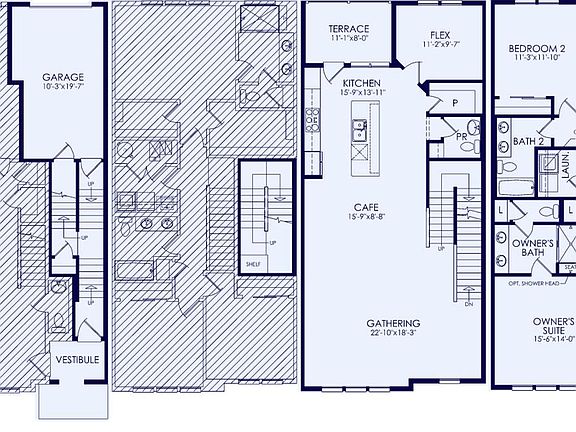 The Sydney is the largest 2-level condo at Farmstead District, offering the space of a townhome with an included terrace off the kitchen and an optional fireplace. It features 3 spacious bedrooms upstairs, including a large owner’s suite with 2 walk-in closets. The first level includes a rear kitchen with a large walk-in pantry, opening to the café and large gathering space. The den can be used as an office. The Sydney at Farmstead District offers abundant natural light with many windows.
