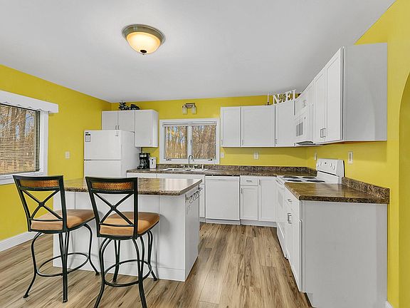 Welcome to the country. This home sits on 7 private acres, surrounded by mature trees offering 2 bedrooms, open main floor plan with updated kitchen with center island, updated bathroom with walk-in tiled shower, main floor laundry and generous living room with wood fireplace. Newer roof, Furnace & central Air. Basement has a separate shower and newer wood stove.