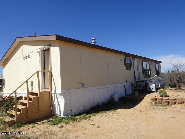 Motivated seller. Rare 4 BR under $60,000 on acre in Catalina.Convenient location,approx 2 1/2 blk from Bubb's Grubb on Oracle, yet ''hidden'' away! Home is on the high part of lot & the lower part backs to a wash. Mountain views.Vaulted ceilings.Large eat-in kitchen w/an abundance of cabinets.Spacious master bedroom suite w/lots of closet space, is split from other 3 bedrms for privacy.Master bath has romantic garden tub, plus separate shower. Lots of cabinets in laundry rm. County records say 28 X 56 (1568 sq ft), appraiser said 1396. Needs a little TLC.( Replacing carpet and cleaning would make it look 100% better). Previous tenant had dogs.Manager of LLC that owns home is licensed to sell Real Esate in AZ.