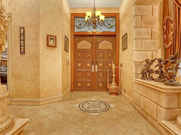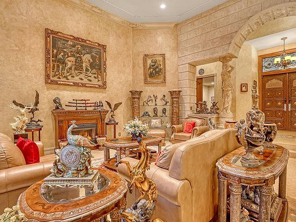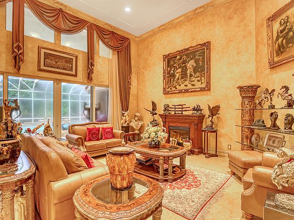 Step into this spectacular palatial estate with just over 9,000 Square Feet. As you walk through the palace pay attention to the 34 Corinthian pillars, 5 Angel Water Fountains, and 13 Statues before making your way into the professionally soundproof movie theater with detailed ceilings imported from Columbia.As you step into the 1 acre+ yard, you will feel welcomed by the 275 feet of river waterfront.Rio Poco only has 90 homes, with each home spaced well to give you the privacy you deserve.The estate is divided by a four season sunroom that is fully air conditioned.2007: an addition of 4,600 square feet was added.Welcome home, your palace awaits.