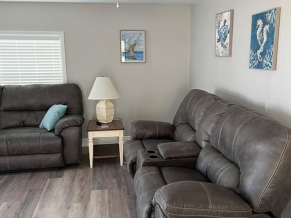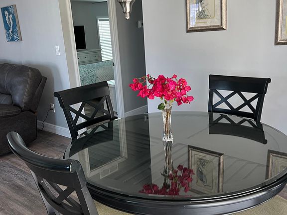 Beautifully updated, super clean and completely furnished vacation home is waiting for you! 2 bedrooms, 2 full baths. Has brand new kitchen with granite countertops, new refrigerator with icemaker, dishwasher, washer, dryer, brand new luxury vinyl flooring throughout, brand new sofa with recliners, 3 flatscreen tv's, carport/covered patio area with grill. Sliders to front porch and to carport/patio. Freshly painted throughout. Immaculately clean, newer dishes/pans/coffee maker/ most kitchen items/bath towels, etc. (very well stocked with everything you will need). Modern, open design with TONS of cabinets, closet space, and storage throughout. All newer, king and twin beds/bedding/throw blankets, extra, all new/newer sheet sets, etc. Beautifully decorated, light and beachy feel....truly "homey" here. Exceptional, ideal location, just 1/2 mile to beach shuttle, 3 miles to Ft. Myers Beach, 7 miles to Sanibel Island! Close to Super-Walmart, walk to Target, Publix, great dining, Pubs & Grills, Shopping, etc., ... yet still within a smaller, quiet and safe community. Available April 1st through October 31st for lease, short or long term, furnished. $2100/month for one month, $1900/month for 2 or more months through 10/31/23. Must have very good credit and references. No pets/No Smoking. No Smoking Up to 4 renters only