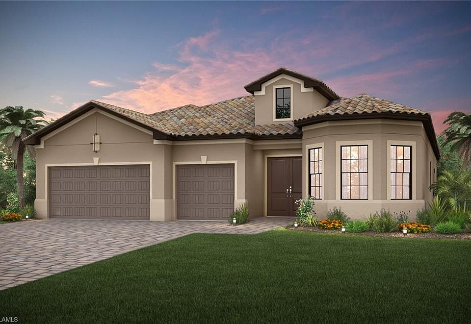 Special Financing available. Contact a Sales Consultant for more information. Move in River Hall Country Club! The Stonewater features 3 bedrooms, a den, 3 full baths, and 3-car garage. Exceptionally appointed kitchen open to the gathering room, built-in stainless steel appliances, designer tile backsplash and upgrades include Quartz counters in the kitchen and bathrooms, shaker style cabinets, porcelain tile in the main living and wet areas, carpet in the bedrooms, laundry room with storage cabinets, Coffered ceiling in the gathering room, The outdoor living space features a beautiful pool with screen enclosure with golf and and lake views. Bundled golf, resort lifestyle community, 18-hole Davis Love III masterpiece course. The Country Club clubhouse features Caloosa Grille, bar, golf shop and men’s and women’s locker rooms with personal lockers. Lagoon-style resort swimming pool, 2 Bocce courts, 2 Har-Tru tennis courts, 4 Pickleball courts, On-site Activities Director. Photos are for illustration purposes only, options may vary.