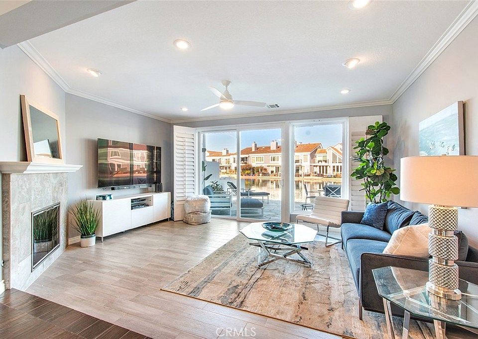 SPARKLING WATER VIEWS AT THIS BEAUTIFULLY UPDATED TOWNHOME (3br/3ba) IN HUNTINGTON HARBOUR'S SEAGATE DEVELOPMENT - PRIVATE PATIO RIGHT ON THE LAGOON AND HIGH END CONTEMPORARY UPDATES THROUGHOUT! BEDROOM DOWNSTAIRS AND Bathroom downstairs includes 3/4 shower. Besides this great Harbour location - just minutes to the Beach, it has been Completely Remodeled with high level finishes, including Quartz Countertops, Recessed Lighting, Wood looking Tile and Vinyl Plank Flooring throughout. Kitchen and all 3 Bathrooms have been Updated with Stylish Contemporary Finishes and High End Appliances. Located on in the Highly Desirable WATERFRONT Lagoon in Seagate. You can Paddleboard or Kayak right OFF YOUR OWN PATIO! On the main floor is a bright, white contemporary kitchen with quartz counters with marble design, Frigidaire and Kitchen-aid appliances, Glass Tile Backsplash that is OPEN to the Living and Dining areas with a beautiful WATERVIEW right from the kitchen sink. This OPEN layout is perfect for entertaining! Separate Dining area has floor-to-ceiling built-in Cabinets with glass doors and is open to the kitchen and living room. Living room has Double Height Ceiling and a cozy Fireplace with Large sliding doors out to the sparking Waterfront Views on your Private Patio with natural slate stone. One bedroom is conveniently located on the MAIN level, as well as a beautifully Remodeled Bathroom with standing shower. Upstairs is a Stunning Master Suite with a Spectacular Water View and Private Balcony (SEE ALL THE SUNSETS), Vaulted Ceilings, Vinyl Plank Flooring and a Ceiling fan. The Master Ensuite Bath is Spa like with Quartz Counter and Dual Sinks with Large Walk in Marble Shower and 2 Large Closets. Large Secondary Bedroom upstairs with Walk-in Closet and View out to the Greenbelt area adjacent to a Beautiful Bathroom with a Massive Jetted Tub perfect for unwinding at the end of the day. Handcrafted Crown Moldings, Wainscoting and 6 panel interior doors show the Attention to Detail that have been put into this Beautiful Waterfront Home. Seagate offers 2 Pools and spa areas, a Lush Greenbelt and Walking Trails and a playground area. A Private Garage, as well as (Community) 6 Tennis Courts steps from your front door. WELCOME TO HUNTINGTON HARBOUR RESORTY STYLE LIVING AT ITS BEST! **MORE PHOTOS,3D, VIDEO COMING SOON**