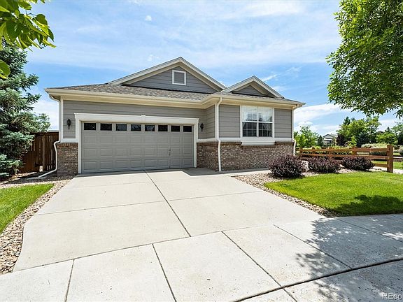 Welcome to Buffalo Mesa, the much sought after 'feels like home' neighborhood where metro tax district/HOA takes care of trash, recycling and community pool. Located on a large lot in a quiet cul de sac, this beautiful ranch home backs to open space, trails and has a community pool for everyone to enjoy. An open floor plan welcomes a huge kitchen with island, wood floors, stainless appliances and pantry along with 3 bedrooms and 2 full baths all on a main level featuring a gas fireplace. The primary suite features dual vanities plus ensuite bathroom with privacy away from the other bedrooms. Conveniently located to several commuting routes makes this home quite the find.
