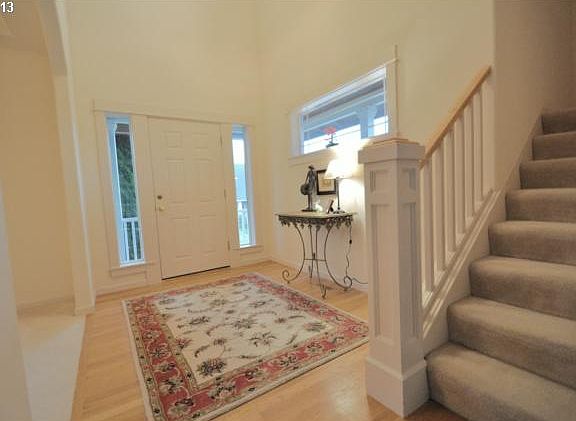 Beautiful craftsman home with wrap around front porch, stylish and open spaces with large great room with stunning fireplace. Light and bright a cheerful home with high ceilings and so much more. Professionally landscaped large back yard with fruit trees and expansive deck. Great location & Move-in ready - Sunday Open House 1-4 pm