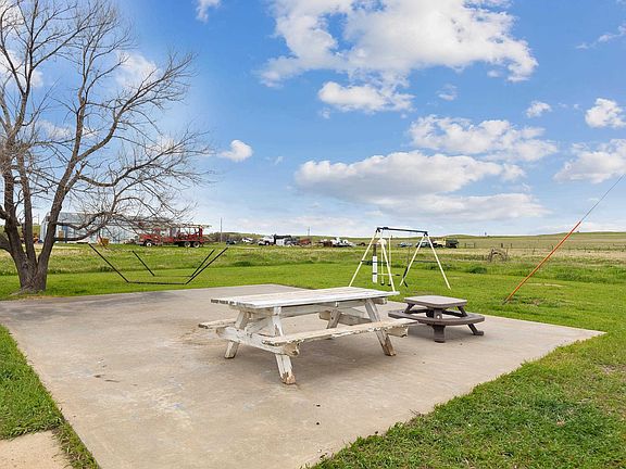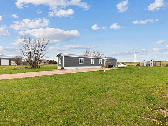 Listed by Andrea Eddy 605-270-1520, Berkshire Hathaway HomeServices Midwest Realty. Welcome to this charming three-bedroom, one-bathroom manufactured home nestled in a quiet small town. As you approach, you're greeted by its fresh facade, boasting new siding, large yard and ample parking. Step inside, and you'll find a cozy living space, perfect for relaxing or entertaining friends and family. The neutral tones and ample natural light create an inviting atmosphere, making it easy to imagine yourself unwinding after a long day. Kitchen is efficiently designed, offering functionality with eat in dinning area and open to living room. enjoy home-cooked meals and gather for lively conversations. Primary bedroom privately located behind the living space and down the hall, two bedrooms offer privacy and comfort for restful nights. The well-maintained lot surrounds the home, offering a serene backdrop of nature and the tranquility of small-town living. *Lot Leased*
