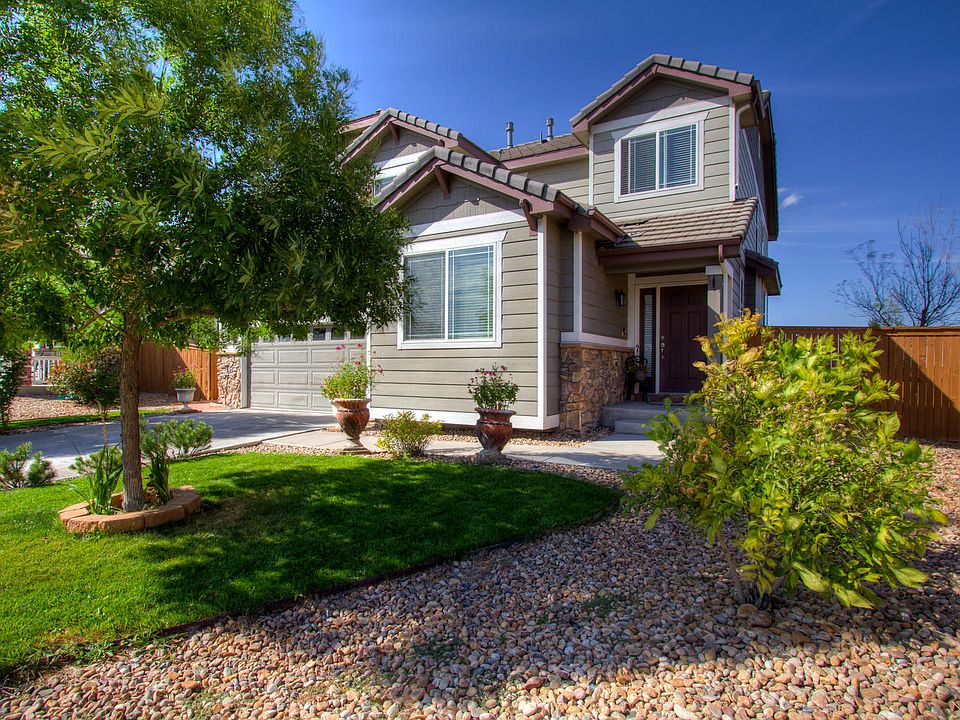 Beautiful 4 beds 2.5 baths 3848 sq ft plus office (2693 sq ft finished + 1155 sq ft unfinished basement) 2 car garage. Large size master bedroom with 5 pieces master bath & walk in closet. 4 beds 2 baths upstair with laundry room in upper level. Main level has an office, half bath, living room, formal dining, kitchen with granite tiles counter top & stainless appliances, plenty cabinet & nook area. Family room with high ceiling & fireplace. Washer & dryer hooks up. Good size backyard with concrete patio, mountain view & back to no neighbor, near trails. Access to Buffalo Mesa Clubhouse with outdoor swimming pool. Minutes away from convenience stores, grocery, hwy 85, I 76, I 70, E470 & DIA. Only small/ medium DOG (up to 25 pounds) will be considered, NO Cat & NO MMJ please. AVAILABLE NOW! . For more info, please contact Andy @ (3O3) 263 4496. Thank you. No smoking, No MMJ, No Cat, only up to two (2) small dog under 25 pounds will be considered. There will be Pet deposit & monthly pet fee.