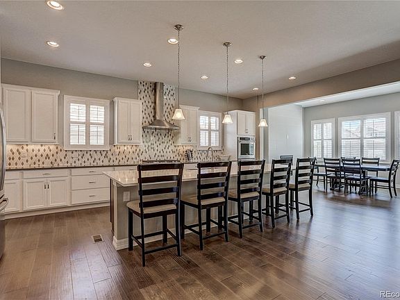 Welcome home to this immaculate like-new Anthem Highlands home. With high-end luxury finishes throughout, the open floor plan is inviting & ideal for relaxation & entertaining. Gleaming hardwood floors & soaring ceilings greet you as you enter the home. The designer kitchen is every chef's dream featuring a gorgeous island, granite countertops, stainless steel appliances, pantry, access to the formal dining room, as well as bonus dining area with gas fireplace. The kitchen is open to the living room & opens out to the backyard & covered patio for al fresco dining. The living room features a beautiful gas fireplace with built-in shelving. There is one bedroom and 3/4 bath downstairs, as well as a mudroom complete with bench and cubbies, and half bath. Head upstairs to the luxury master suite that boasts a fabulous 5 piece ensuite bath with soaking tub, luxury shower, two walk-in closets & dual vanities, as well as a bonus sitting room. 3 additional bedrooms are upstairs, as well as two full baths, laundry room, & even a loft for a bonus game/rec room. Enjoy all that Anthem has to offer including Clubhouse, Fitness Center, Pool and Tennis Courts. Welcome home to Colorado living at its finest.