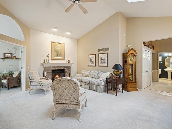Welcome home to maintenance free living in Wellington Lakes! This meticulously maintained villa is nestled in the heart of Granger just south of Knollwood Golf Course. It was built in 1996 and has been the main stay for family gatherings and sweet memories for many years. On the main floor you will find a large kitchen with ample amount of cabinet space, a double oven, a breakfast bar, an island, and more. Truly a chef's kitchen! The adjacent informal dining area is bathed in natural light and has a serene view of the pond, creating a welcoming atmosphere for every meal. Next to the kitchen you will be welcomed by an even flowing living room and dining room that creates the perfect space for entertaining friends and family. You'll find the primary bedroom on the main level with two large closets and a spa like ensuite, which includes your own deeply jetted tub. There is also a separate main floor room that can be used as an office space or other purposes. On the lower level you will find a large open living space with a walk-out sliding door. Down the hall are the two additional rooms alongside another full bathroom. Don't wait, schedule your showing today!