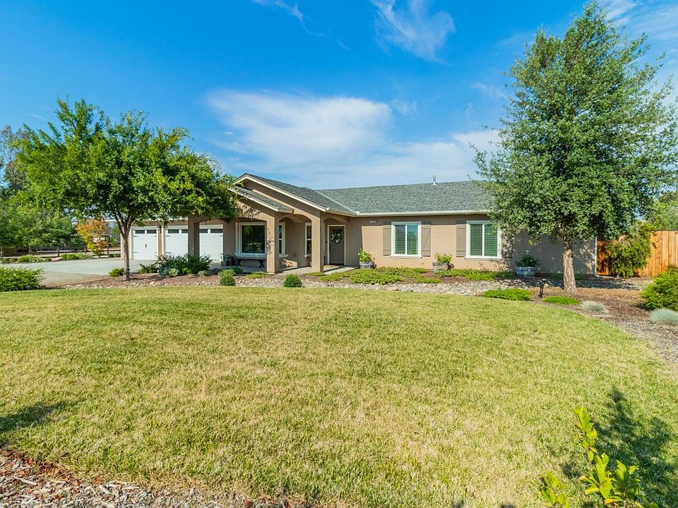 Beautiful 4 bedroom home on over two acres in Madera Ranchos built for entertaining. Enter the property through the automated gates along the tree lined drive. The home has been professionally landscaped both front and back. As you come through the front door you are greeted by the large living room with vaulted ceilings, dual fans and surround sound. The chef's kitchen has granite counters and a handmade Shaw farmhouse sink. This home has two master suites on opposite sides of the home. The main bedroom walk-in closet features a full built in custom designed California Closets clothing system. Four season, outdoor entertaining anytime day or night, featuring a covered patio with modular BBQ kitchen, Pebble Tec pool with waterfall, pergola for relaxing and a natural stone fire pit area for those cool evenings. Covered RV parking / shop measuring 18' by 45' with concrete floor and attached 15' by 20' storage / well house. There is nothing behind you but acres of cattle grazing fields providing unobstructed views of the Sierras. The property is ready for your horse with its fully fenced front corral. Make your appointment to see this gem today!