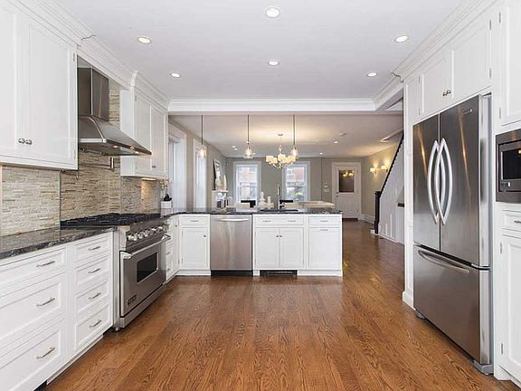 Rare freestanding 21â wide limestone townhome on a 25' x 80' lot in coveted uptown Hoboken, renovated in 2011. This unique home has approx 3375 square feet flooded with light and windows on three sides. The main floor features the ideal open floorplan: living room with working fireplace, dining room, powder room and oversized kitchen. Custom chefâs kitchen with breakfast bar, Viking six burner stove and French-door Kitchen Aid refrigerator. The home has 4 bedrooms including a master bedroom suite with library/sitting room. 3 additional bedrooms on top floor. 2.5 baths with radiant heat floors, Porcelanosa tiles, Toto & Kohler fixtures. Luxurious master bath has separate steam shower and double vanity. Lower level features a large family room, wet bar and two storage rooms. The house has 4-zone heating, 2-zone high velocity central air, 2 washer/dryers, central vacuum and security system. Spacious bluestone patio and yard access from sliding doors or private side entrance. Parking, shops, schools, waterfront and NYC bus moments away. One of a kind.