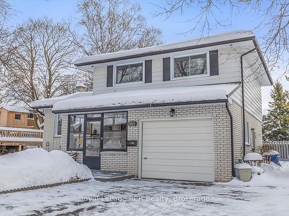 Charming Curb Appeal on Corner Lot with Countless Updates. I'm sure you'll agree that the front porch adds a welcoming touch as you enter this home, and whether you use it as a 3-season sitting area or a mud room, it's convenient at any time of the year! This property features an eat-in kitchen with included appliances, patio doors that lead to a gorgeous covered deck equipped with a comfortable ceiling fan, the perfect spot to enjoy a warm summer day or evening. Additional highlights include a living room with a gas fireplace, a dining area, three bedrooms, 1 1/2 bathrooms, a cozy recreation room with an electric fireplace, and a basement for all your hobbies and ample storage. Additional features consist of a new metal roof installed in 2021, a 6' x 14' storage shed, a newly installed water softener, a hot water heater added three years ago, and an attached garage. The large, partially fenced yard completes this inviting home. The design of this home is perfect for families of all ages, and it is within walking distance to amenities - the location can't be beat!