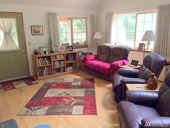 A rare find. An exceptionally well designed and constructed house situated on a level 1.4 acres in a peaceful park-like setting. The house features an open floor plan with a comfortable feel. It has a covered porch, decks, fenced yard, garden space, hardwood floors, vaulted ceilings, a shop, garden space. The upper level room is being used as a second bedroom/office. House has a 3 bedroom septic system. A metal rood and cedar siding for ease of maintenance. also, high speed internet.
