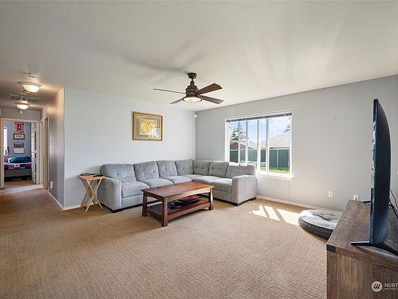 Very well maintained home in a quiet neighborhood. Fully fenced level back yard with great sun for potential garden area or use your imagination! Gravel area along the side of garage for RV parking. Enclosed back porch adds extra living space off of the dining area. Primary ensuite with shower. Full guest bathroom. The furnace was replaced in 2013 and the water heater in 2018. The dishwasher was replaced in 2021 and the kitchen stove is a 2018. Easy access to I-5, Burch Bay, or downtown Blaine. Close to shopping, dining, and schools. Move in ready!
