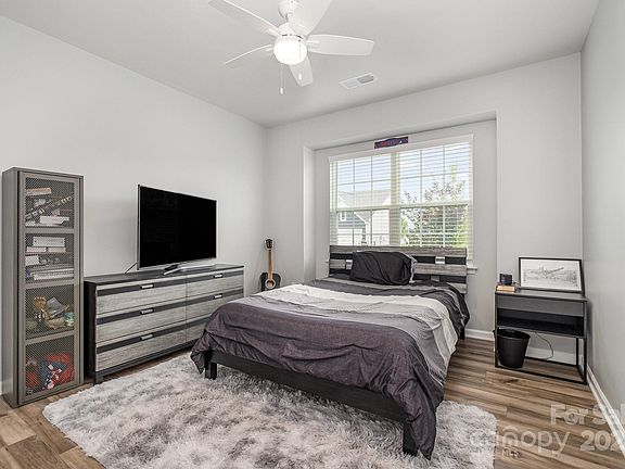 Discover this nearly-new 1.5-story ranch in the prestigious Gambill Forest of Mooresville. Spanning over 2,600 sq. ft., this home blends luxury with comfort. The open floor plan boasts a gourmet kitchen with a grand island and charming breakfast nook, ideal for gathering. French doors lead into a room with flexible use as a formal dining room or an office. The main level features a primary suite with a spa-like bathroom and walk-in closet, plus an additional bedroom and full bath. Upstairs, a private retreat awaits with a bedroom, full bath, and a versatile loft. Step outside to a serene screened-in porch and a low-maintenance yard with tranquil pasture views. Enjoy community amenities like a pool, clubhouse, and scenic walking trails. Situated in the Mooresville Graded School District and minutes from Downtown’s vibrant dining and shopping, this impeccably maintained home offers the perfect balance of style and convenience. Your dream home is waiting—don’t miss out!