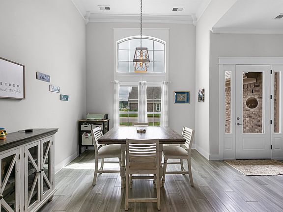 Beautiful 4 year old brick home on a corner lot in the Shepherd's Field Subdivision in Jackson, Tennessee. 2655 square foot 4 bedroom 2.5 bathroom home has a dining area with 14 foot ceiling, spacious living room with 12 foot ceiling & a gas fireplace, large Low-E windows throughout, wood-look tile in the main living areas, upgraded lighting, & a tankless water heater. Primary bedroom features tray ceilings, 2 walk-in closets, a large bathroom with a free-standing soaking tub under a lovely etched window, a separate tile shower, & double granite vanities. The kitchen has an eat-in area, a work island, dark stainless steel appliances including an upgraded gas range with vent hood, soft-close shaker cabinets that reach to the ceiling with glass inserts, granite countertops, & subway tile backsplash. A 3 car garage with Tesla charger, a side driveway, and a front circle drive provide ample parking. Enjoy the patio & salt water pool with 4 fountains & a sun ledge in the fenced backyard.