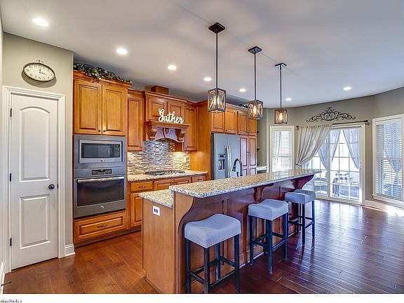 Act quick on this beautiful custom built brick ranch home, in desirable Kingsmill Subdivision. This house offers a great back yard, with trees offering tons of seclusion. The kitchen has custom cabinets by Vittitows, including a custom hood, custom pantry, granite, and tile backsplash. The whole first floor has wood floors, excluding the tile everywhere else. The master bedroom has a huge double tray ceiling, and tons of light. The master bath has a tray ceiling double bowl vanity, and a huge tile shower, and whirlpool tub. Be sure to check out the wood double front doors, on the entry, which leads to the foyer and directly off the formal dining room. The formal dining room has arched opening, 14 foot tall ceilings, and custom wainscoting. The living room has a tray ceiling, and a large corner fireplace. Off the kitchen, you will find your 3 season room, that is on a concrete floor, so you will never have to stain a deck. The basement is finished with a huge family room, an office, a hobby room, bedroom and a full bathroom. This is ready for entertaining the whole family. The driveway has been oversized, to park a lot of cars, or perfect for that basketball court you have been planning.
