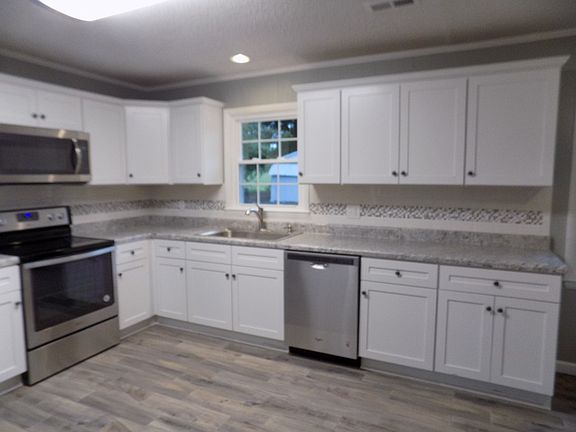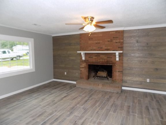 Fantastic, move-in ready brick ranch! Home features open floor plan, complete with huge living room, large hearth & FP, separate laundry room, large kitchen with stainless steel appliances. It's just like new with fresh paint, flooring, brand new kitchen cabinets, countertops & appliances. Bathroom have been tastefully redone as well. Large lot & 2 outbuildings for additional storage space. Home has back patio & covered front porch. Call for a showing today!