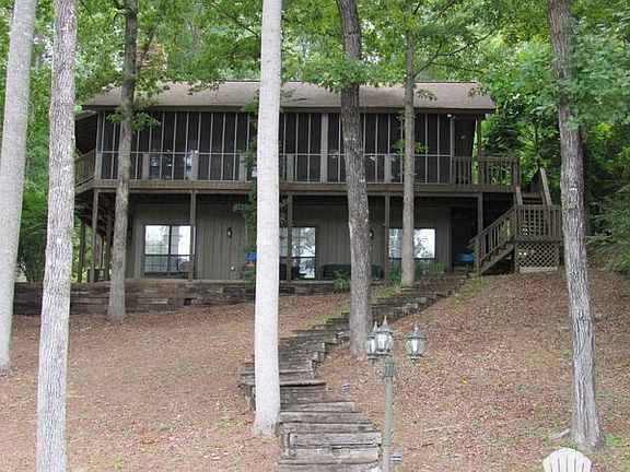 Explore the many details and craftsmanship in this unique, well constructed Five Bedroom Four and one half bath Lake Home on Lake Wedowee. This home offers mostly paved roads, county water and even Natural Gas. This lake front home has a gentle slope to the water and is located on desirable Wedowee Creek. There is a sea wall in place along with two docks, one of which has a boat lift! Reclaimed wood from an old church and barn from the Wedowee area have been used to create impressive and dramatic ceilings and kitchen cabinets. Must see the oversized screened in porch that overlooks the lake.The master bedroom is located off of the main living area and includes a modern bathroom with double vanities, tiled flooring and tiled shower with a separate tub. Upstairs is a very large bedroom or possible game room. Upstairs also includes a full bathroom. The downstairs terrace level includes 3 more spacious bedrooms and 2 full bathrooms. ****Some furniture may be included in the sale******
