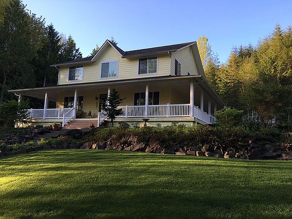 Beautiful Custom Built Farm Style Home on 6 acres with a 1,500 Sq. Ft. full wrap around porch and a unique water feature in front of home. 9 foot ceilings 3' wide X 8' high doors everywhere and extra wide stairs and hallways. Large master suite with sitting area, large walk in closet, very large master bathroom with corner soaking / jetted tub and very large custom tiled corner shower with both conventional and rain shower heads. Home has both a Basement and Second floor laundry. Home has a fully finished 820 Sq. Ft. basement used as a media / hobby room. This home has a 780 Sq. Ft. completely finished garage with mud room area that has an additional 2nd laundry area, it also has a commercial grade stainless double sink. Home has a builtin whole house vacuum system that services the all of the home & garage. Home is fully wired with cat 5 and wireless tech and has JBL high end speakers in every room to include 7.1 surround sound in family room and yes even stereo in the finished garage and all around the porch. Whole house audio is fed from media cabinets located in finished garage and each room has its own individual (in wall) amp for selection of the source you want from the Harmon Karden distribution modules. Terraced garden spaces behind home with fruit trees and berry's and an abundance of flowers! Walking and ATV Trails throughout the whole property. Property includes a huge shop that is 40' wide X 60' long with 16' eves and is fully insulated. Shop also has two 14' wide X 60' long covered equipment storage area's on each side and a 14' wide X 40' long front porch.
