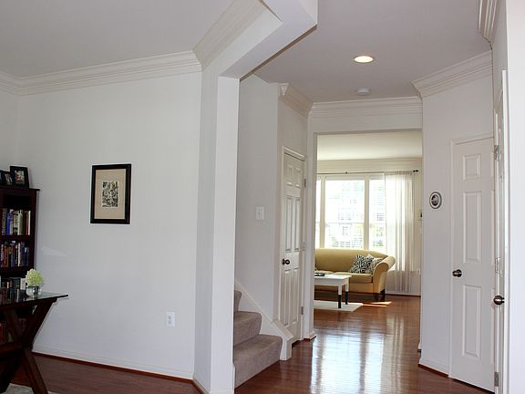 Bright and airy open floor plan Colonial features hardwood floors throughout the main level, granite countertops, stainless appliances, large kitchen breakfast bar, double crown molding, laundry/mud room, French doors, double bath vanity, formal living & dining, & more! Level low-maintenance yard with landscaping & attached 2 car garage. Finish the basement with bath rough-in for even more living space!