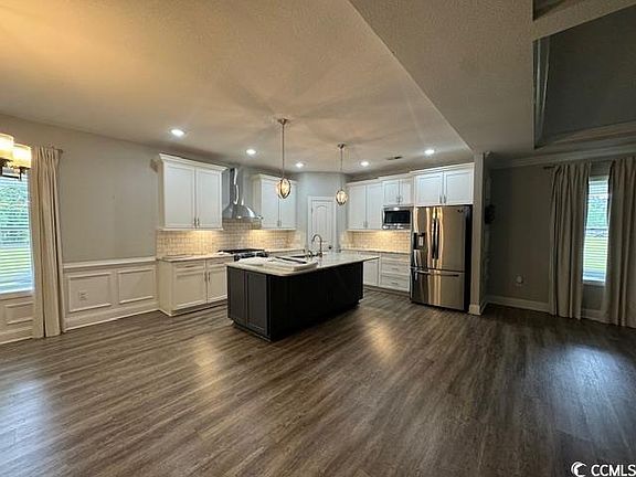 This one-of-a-kind barndominium combines comfort, style, and functionality. It features 2 bedrooms, 2 bathrooms, and over 3,000 square feet of versatile shop space — all set on 6 private acres in the desirable Aynor School District, with no HOA. Inside you'll find solid surface countertops, solid wood cabinetry with soft-close doors and drawers, classic wainscoting and chair rail in the dining area, and durable LVP flooring throughout. The spacious master suite boasts a tray ceiling, ceiling fan, and recessed lighting. The master bathroom is equally impressive, featuring solid surface countertops, a garden tub, and a beautifully tiled walk-in shower. Don't miss out, call today for more information.