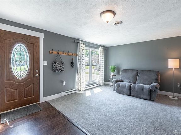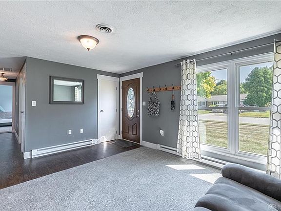 This cozy Cedarville ranch has all the makings of a charming new home. Its cheerful blue siding and white shutters offer tidy, welcoming curb appeal. The formal front room is open to the entryway and provides endless possibilities as an office or living area. The kitchen is the heart of this home with open views, warm, newer wood cabinetry and an eat-in nook. A half wall provides views to the family room with updated fan and stylish paint. A cleverly located laundry room connects the kitchen to the main hallway where two bedrooms and the main bath are located. The fully remodeled bathroom features a jetted tub with a beautiful tile surround. The primary bedroom has double closets and its own private half bath. Outside, a patio and newly fenced yard provide additional space to gather with friends and family. New carpet, vinyl flooring, and newer AC and water heater mean that the only thing left to do is the fun part - decorate!