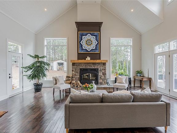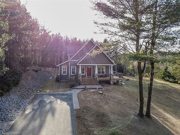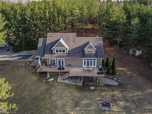 Located in the highly sought-after area of Grafton, this stunning Arts & Crafts Style bungaloft blends traditional elements with modern aesthetics. The luxurious light-filled great room features vaulted shiplap ceilings, a wood stone fireplace and floor-to-ceiling windows. The open concept kitchen and dining area feature a large island, built-in appliances and ample space for the whole family to gather. The main floor master bedroom features a spacious ensuite and private terrace area complete with a hot tub! Upstairs you'll find two guest rooms with a bath. Perfect for the kids to have their own personal space or guests. The elegant lower-level family room has a gas fireplace and French doorways to the park-like yard. The additional guest room, exercise area, and office complete the well-appointed layout. Outdoors you'll find a three-car garage and one-of-a-kind yoga studio! Perfect for your private medication nook, kid's cabin, or bunkie. Situated on over 6 acres of a tranquil forest setting near trails and just seconds to the world-renowned Ste. Anne's Spa, Northumberland heights, and Whispering Springs.