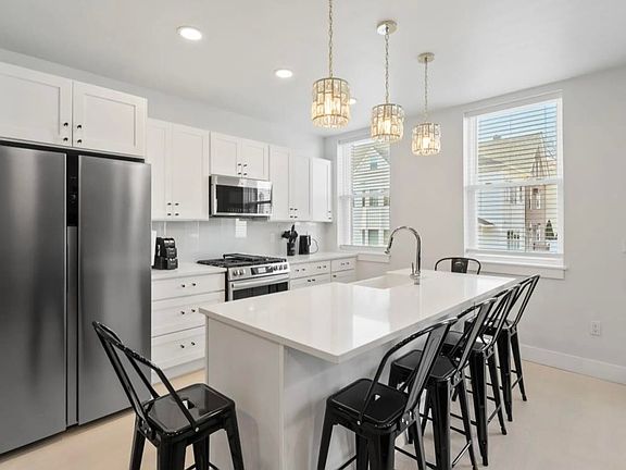 Prepare for your jaw to drop! Your opportunity at luxury living is here. Welcome to this stunning new construction 2-bedroom, 2-bathroom duplex apartment that perfectly blends modern luxury with everyday functionality. This thoughtfully designed space features an open-concept kitchen and living room that flows seamlessly onto a private deck, ideal for entertaining or relaxing outdoors. The chef-inspired kitchen boasts a large quartz island with a farmhouse sink, under-cabinet lighting, soft-close solid wood cabinets, a slide-in range, microwave, dishwasher, and a spacious side-by-side refrigerator all crafted with quality and convenience in mind. High ceilings and oversized windows fill the home with natural light, creating a bright, airy atmosphere throughout. The primary bedroom is a true retreat with soaring ceilings, an extra-large closet that could double as a home office, and plenty of room to unwind. Additionally, the second bedroom also features high ceilings and a large closet, making it perfect for all your needs. Just outside the bedrooms, you'll find a full-size washer and dryer, plus generous storage options throughout the unit. With high-end finishes, smart design, stylish comfort in every detail, and unbeatable location near shops, parks, restaurants and transportation, this beautiful duplex offers the perfect place to call home. Don't miss your chance!