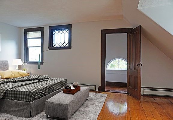 AVAILABLE AUGUST 1 2025 - Spacious 3rd floor 3 Bedroom apartment! Features hardwood floors throughout, charming eat-in kitchen, LED lights, a large bathroom, rooms with high ceilings, and a spacious deck! The is a huge room on the top floor with hardwood floors, mini-split air conditioning unit, and two skylights. It's a must see. Off-street parking available for rent. Shared laundry access. The property is located convenient to Moody St & Waltham Center! Easy access to shops, restaurants, commuter rail to Boston, buses, Mass Pike, Route 128, and I-95. Tenants pay all utilities. No dogs. Cats allowed, up to 2. Pet rent is $25.00 per pet monthly. Student Friendly! Walking distance to Brandeis and Bentley Shuttles!