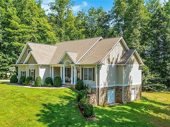 A stunning 4-bedroom, 3-bath home featuring Hardie board siding and stone accents. The open floor plan seamlessly connects the living, dining, and kitchen areas, showcasing hardwood floors, 9' ceilings, and unique architectural details that allow plenty of natural light. The master suite offers a separate shower and a large soaking tub for ultimate relaxation. The 4th bedroom serves as a guest suite with a full bath. The split bedroom floor plan provides privacy, with two additional bedrooms for guests on the main level. Plus, there's a full unfinished basement plumbed for a 4th bath, offering potential for future expansion.
