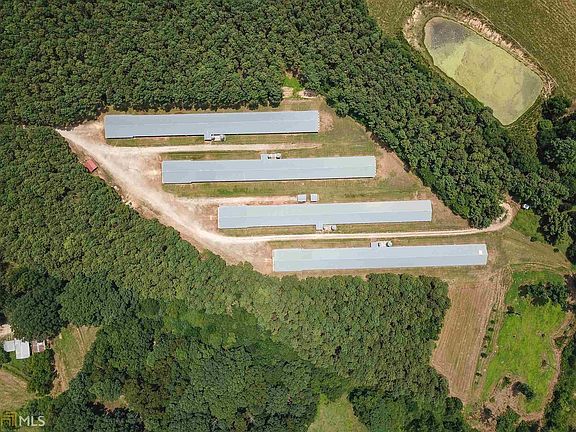 EXCEPTIONALLY WELL MAINTAINED 35 acre farm with 4 chicken houses growing pullets with Harrison Poultry. Updated houses were built in 2004 and are 40 x 450. Bird capacity is 13,000 per house and cycle time is 22 weeks. Farm uses Walton EMC for gas and includes 5 drilled wells. One produces 100 gallons per minute while two others produce 80 gallons per minute. Property has open fields for dove season, as well as matured pines and hardwoods with excellent deer hunting. Sale also includes a 3,000 sq ft home with many updates, including flooring, appliances and HVAC. Home has a beautiful in ground swimming pool that is fenced and has a new liner. All appointments must be made after proof of funds or lender qualification Listing agent will be present for showings