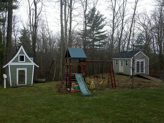 Lovely 4 bedroom contemporary farmhouse in desirable Northampton Neighborhood with many great features. 1st floor has oak floors and high ceilings, spacious eat-in kitchen, laundry room, formal dining room, half bath, and living room with gas fireplace. Lower Level finished Walk-out basement adds an additional 900 square feet with 3/4 bath. Home is situated on large lot surrounded by conservation land with fenced in backyard with large storage shed and custom playhouse. Priced for quick sale.