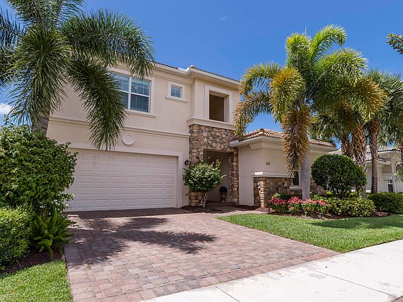 Luxuriously appointed, this coveted extended Santangelo model with absolutely stunning finishes provides a sought after lifestyle in the resort-style gated community of Jupiter Country Club. **Property priced aggressively to sell for a contract prior to Feb. 20, 2024 to accommodate the seller's travel schedule. BONUS: FULL GOLF MEMBERSHIP is available to the buyer of this home.** There is currently a long waitlist for this sought-after level of membership. (Buyer could downgrade to social/club membership.) This spacious floor plan offers 5 bedrooms, 3 1/2 baths and over 3,500 sf of living area. The 5th bedroom can also be used as an office/den. Technology abounds in this smart home outfitted with Wink Hub & Alexa which allow the garage door, thermostats, lighting, spa and more to be controlled via a smart phone/tablet or manually. Step out from the open concept great room into the outdoor oasis. Welcoming & comfortable, this outdoor living area boasts an extended covered lanai, a fully outfitted summer kitchen, a stacked stone encased fireplace/TV area, an oversized spa PLUS a private putting green! Enjoy the comfort of the screen enclosure while overlooking the lush tropical landscaping and the golf course. Relish the colorful and breathtaking sunsets from this truly magnificent area! The great room and kitchen are the heart of the home. The living area has coffered ceilings, hardwood floors and a custom-designed media wall with built-in cabinets and floating shelves. The gourmet kitchen features an expansive granite center island, solid wood white soft-close cabinetry, a glass subway backsplash & a wine refrigerator. The primary bedroom is on the first floor along with one guest bedroom with en-suite bath, a powder room and a den/office (or 5th bedroom). Upstairs offers an additional flex space which could be used as another office or exercise area and 2 bedrooms with a Jack & Jill bath. The primary retreat is oversized with a sitting area, 2 spacious walk-in closets and a spa-like master bath with dual vanities, a makeup seating area, a walk-in shower & soaking tub. Jupiter Country Club is a luxury gated community conveniently located within close proximity of I-95 and the FL Turnpike, beaches, shopping, restaurants, parks & nature preserves. Club amenities offer a plethora of social opportunities and include a Greg Norman Signature golf course, 2 resort-style pools, the newly remodeled Sway restaurant, a state-of-the-art fitness center + yoga/mat pilates/barre classes, tennis, bocce ball, pickle ball & basketball. Members enjoy reciprocal privileges to Invited Clubs worldwide. Live your best life here!