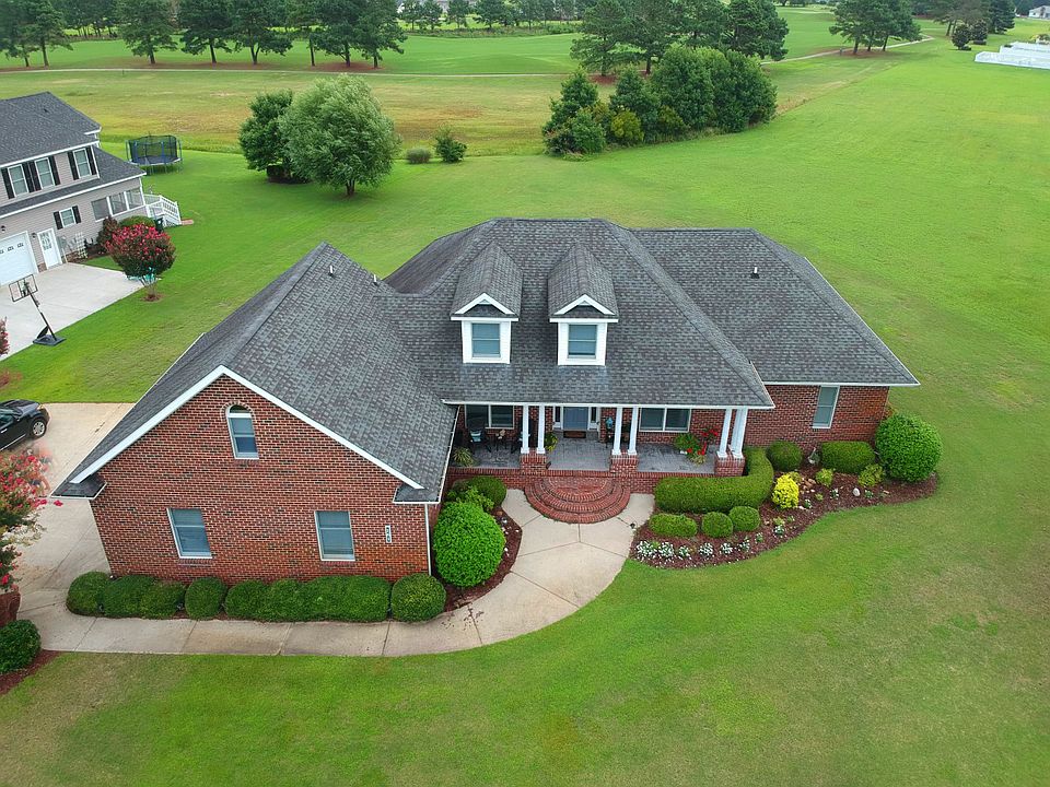 A charming, well cared for home in the Carolina Club with Golf Course views and a custom private pool! Open floor plan with hardwood floors, 9 ft ceilings and crown molding throughout, and newly remodeled kitchen with quartz countertops. The comfortable living room opens to a beautiful salt water pool with raised tiled glass wall and waterfall and travertine pool deck. Most of the living area is on the first floor, which also includes a sitting room, spacious laundry room with utility sink and plenty of storage, and 3 bedrooms. The large first floor master with deck access boasts a sitting area and bathroom with double vanity and large closet. Two other spacious bedrooms downstairs share a full hall bath. One part of the upstairs includes a large bedroom and the other part is currently used as a large workroom and works great as a play room or extra bonus room for kids. Both areas upstairs have access to a walk-in attic. The back porch faces the fourth hole of the Carolina Club Golf Course. This quiet, family friendly neighborhood of the Carolina Club offers community tennis courts and pool and is just a short 15 minute drive to the beaches of the Outer Banks!