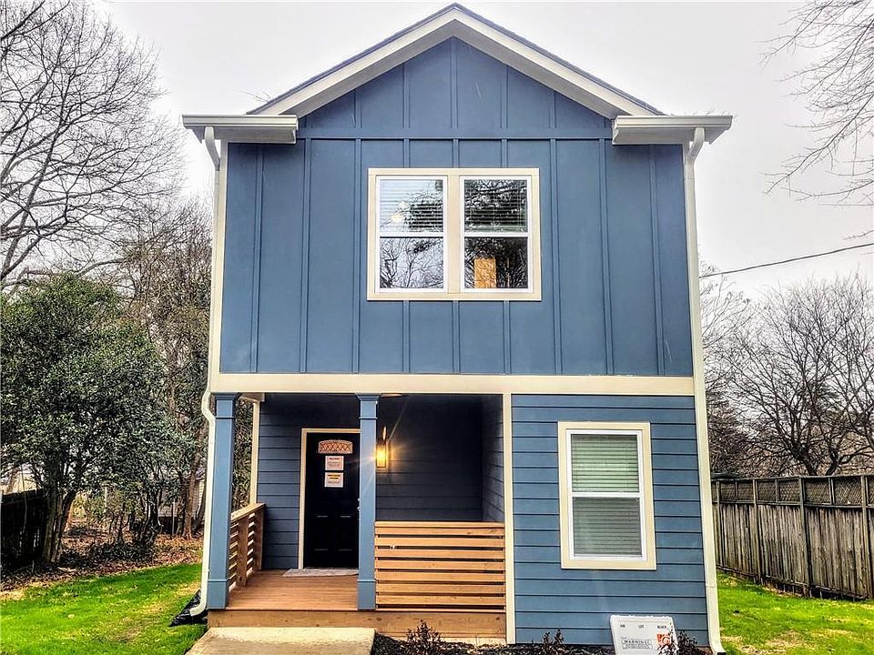 Your opportunity to own this gorgeous new construction home in hot Lakewood Heights is here! From its covered front porch to its spacious level backyard, this home is a must see! Upon entry the open floor plan offers an unobstructed view through the entire main living space. Tucked away in a cozy corner is a nook, perfect for a home office or a quiet reading space. The beautiful kitchen features soft-close shaker cabinetry, quartz countertops, a huge dine-around island, stainless steel appliances (refrigerator included) and premium backsplash. The spacious main level features a convenient powder room and resilient LPV flooring throughout. The three spacious bedrooms are all on the upper level, including an impressive owner's suite with dual closets. The owner's bathroom features a frameless glass shower, marble floors with matching marble shower wall tile, quartz countertops, dual vanities with soft-close drawers and doors, and beautiful light fixtures. Centrally located near Lakewood Amphitheatre, Screen Gems Studios, Tyler Perry Studios, Hartsfield-Jackson International Airport, downtown Atlanta, shopping, dining, and highways.