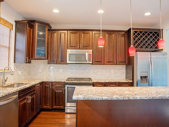 Beautiful, bright and modern, located in a quiet townhome community in Washington DC, this corner unit boasts brick exterior and light-filled windows on 3 sides. An open floor plan makes this home feel even more spacious. A welcoming entryway leads to a ground floor family room and office/bedroom with a full bathroom. The main floor consists of a half bath and a large living/dining area with upscale kitchen to include granite countertops, lots of cabinet storage, hardwood floors, a large island and a built-in computer work station. The upper level includes two carpeted bedrooms, each with a full bath- one with a bathtub. The generously sized primary bedroom has a 2 sink vanity. A convenient laundry room is also on this level. Private one car parking and additional, easy parking right out front. **Viewings will be scheduled beginning Wednesday, Aug 14** Owner pays water. Tenant pays metered electrical and gas. Minimum one year lease. No smoking please.