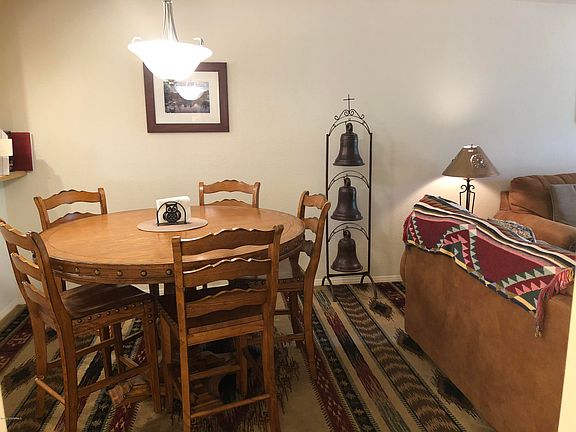 TURNKEY INVESTMENT! Move-in ready 2 bed 2.5 bath, a 2-story Townhouse on 2nd fairway. Enjoy the views from the upper and lower patio of mesas and the fairway. Open floor plan on main level with kitchen, dining-living room combo with wood burning fireplace and powder room. Sliding door leads out to covered patio with storage closet. The second level has two spacious bedrooms with skylights and two full baths. Includes a stacked washer and dryer. Unlimited owner's golfing is included in monthly HOA dues of $420.00 and usage of a 1 car-space in a 2 car detached garage. Has been a successful VRBO rental since 2016. All furniture convey with some exclusions.Enjoy care-free living in friendly gated community of Canyon Mesa Country Club!