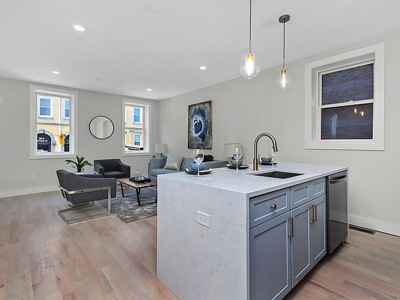 Welcome home to this stunning luxury unit at 161 Cottage in East Boston's coveted Jeffries Point! This BI-LEVEL, 1 bed 2 bath unit with over 1070 sq. ft. features a massive floor plan that won't leave you feeling cramped like so many 1 bed floor plans do. Upon entry of Unit #1, you'll be quick to notice the living, dining and kitchen space with designer features that flows seamlessly with the open concept layout—perfect for entertaining. Ample kitchen cabinets, hardwood floors, large center island, and a half bath round off the first floor. The downstairs bedroom is its own private oasis with ample closet space and a full bathroom including a walk-in shower and stylish tile choices. Situated on a side street, the unit is located in the heart of East Boston with proximity to the Blue Line, parks and many incredible restaurants!
