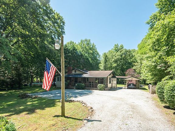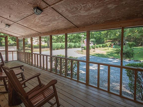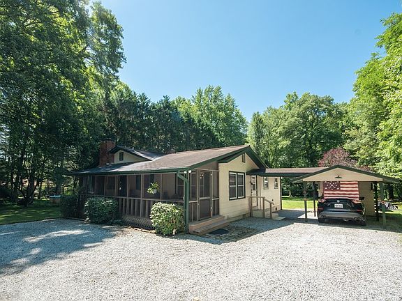Your search is over! Rock your cares away on the Screened Porch and cool off in the Meandering Mountain Stream! Beautiful Setting on .99 Acre of all usable, nearly flat yard. Blueberry Bushes, Grape Vines and Perennials Galore. One Level Living w/only 2 steps into this home. Vintage Hardwood Floors in LR, DR & BR's. Spacious Kitchen w/Island, newer LVP Flooring, pantry & tons of cabinets. Living Room has Gas Log Brick FP and adjoining Bonus Rm. w/Closet. Big Primary Bedroom 20.3' X 9.10' w/Full Bath and Walk in Closet. 2nd Bedroom and Bath. Bonus Sitting/Sewing Rm. off 2nd Bedroom. Updates: Well Pump 2022, Water Heater 2020, Trane Heat Pump and R19 Foam Insulation in Floor & Ceiling 2015. Vinyl Clad Tilt Out Windows. Water Conditioning System and Generator in Shed -wired for most main systems in home. 3 Powered Outbuildings + Carport. Owner has Optimum Internet. Buyers agent to confirm if available for new Buyer. Road Maintenance is on a Voluntary Basis. Covenants appear to be expired.