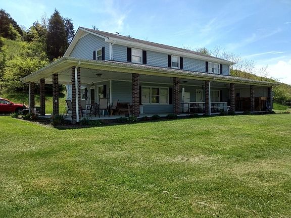 Great farm house on 5 acres awaits your arrival. Home offers 8 bedrooms/2 baths, large great room with pellet stove, nice size updated kitchen/dining room combo and a large utility room off kitchen with laundry area and loads of cabinets. Step outside to your 1260 square feet of covered porch area to sit enjoy the summer breeze. Property offers 5 acres both level/cleared and mountainous/wooded. In the front yard you'll find 3 spring fed adjoining fish ponds. Spring house has recently been rebuilt with metal roof installed. Upstairs Heat Pump does not work and has been priced accordingly. Conveniently located just 8.5 miles from Interstate 81. Don't let this one get away. Buyers to verify all info.