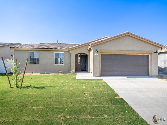 Welcome to the Residences at Latigo Ranch in Brawley. A wonderful new home community situated in a great area of Brawley, with many attributes you are sure to enjoy. There is a high demand for the homes in this community. This is one of the last available homes in this 8th phase, and has just been released for sale. This beautiful brand new home is the lovely plan 1, designed to fit the needs of those wanting a smaller footprint, yet would enjoy the wonderful feel of a spacious open layout. Inside the builder has included may wonderful features for your comfort and enjoyment, such as 9 foot high ceilings, a spacious great room, a walk-in closet in the master bedroom, an indoor laundry room, and more. In additional to the comfortable design of this home, it also offers the advantages of owning a modern new home, such as, energy efficient dual-glazed windows through out, LED light fixtures, a tankless water heater, energy star stainless steel appliances, and much more. The energy efficiency of this home will save you money every day. The comfort of this home doesn't end with the inside. Outside you'll have a spacious 6,959 lot to enjoy as well, with all of the fantastic potential of developing a great back yard. Latigo Ranch is conveniently located, with the Super Walmart, ARCO gas station, Starbucks, Pioneer's Memorial Hospital, schools and restaurants only a few minutes way. At this great price, this beautiful home will sell fast. Call today, to schedule your private showing, and see if this is the one for you. The Estimated Delivery Date is August 12th.