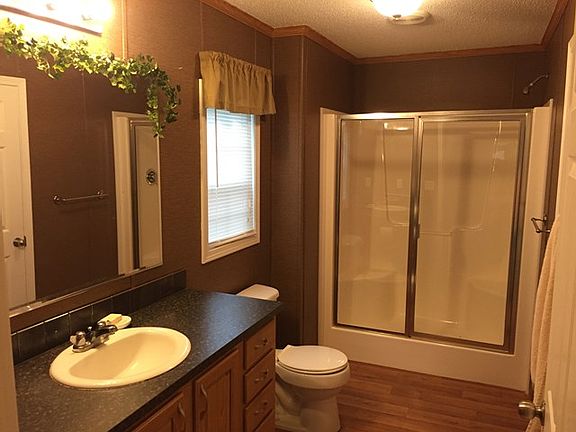 Practically brand new double wide on 5.10 acres. Double carport and 16'x33' out building with ac. Open concept, kitchen dining combo with large living room. Large master bedroom with walk-in closet. Master bath offers low step-in shower. Walk-in closet in every bedroom. Very private and quiet, with beautiful cypress trees on both sides of the driveway. New well dug last year. located 3-5 min from Cedarbrook golf course and only 8-10 min from Elkin Walmart.