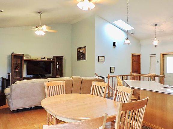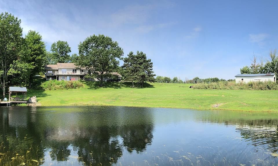 Your oasis with stocked pond (new aerator), dock with electric, fire pit, woods, 4+ car garage, extra garage and full apartment or in-law suite with outside access. This energy-efficient home has poly-steel from basement to roof rafters, heated floors in master bath and heated floors in main floor bathrooms, power skylights with rain sensors, and a heated garage with floor drains, air compressor, huge workshop , and 8x5 pantry.