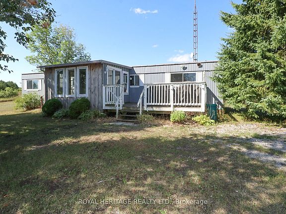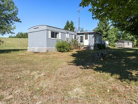 Welcome to 161 Devitt's Road, Bobcaygeon! Discover a great Opportunity to enter the real estate market with this charming 1.34-acre property, ideally located just minutes from Bobcaygeon. The inviting year-round manufactured home, securely placed on piers, features 2 bedrooms and a 4-piece bathroom, nestled amidst picturesque rolling hills and farms. Inside, the home offers open-concept kitchen, dining and living room area, perfect for comfortable living and entertaining. A hallway leads to two well-appointed bedrooms and a 4-piece bathroom, which also includes convenient washer/dryer combo unit. The home is efficiently heated by a propane furnace (2013). Enjoy your morning coffee in the delightful 3-season sunroom or relax on the front deck, both offering serene views. The expansive property boasts matures, established gardens and a newer custom Shed. Situated on a quiet municipal road, this location benefits from year-round maintenance and convenient garbage/recycling pick-up. Essential utilities include a dug well and septic system. The surrounding area features a harmonious blend of farms and residential homes, with nearby trails providing opportunities for outdoor enjoyment. Find your own peaceful paradise close to the amenities of Bobcaygeon or a short drive to Fenlon Falls!