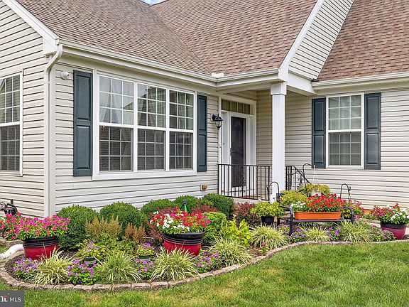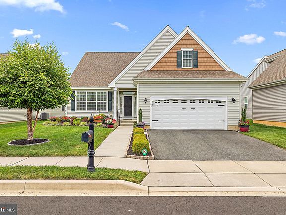Welcome to the premier 55-plus community of Ashland. This Wilkinson Built, 2Br/2 bath, meticulously maintained home features easy 1-level living, low maintenance and open floor concept. Located opposite a beautiful pond with fountain, the front rooms have clear of views of water. Vibrant landscaped beds of robustly-colored flowers and shrubs, precede covered porch, front-entry 2-car garage and cream-siding home with pitched rooflines. Upgrades are plentiful and include increased main living space, hardwood floors, crown molding, granite countertops, subway tile backsplash, wood accent on walls, granite inlay and subway tile wall in FR, storm door, bead- board, ceiling fans, security system, whole house humidifier, pantry built-ins, irrigation system and more! Front door opens to lightly white-washed hardwood floors that create open and airy foyer of crown molding, and carve path and offer glimpse of main space and beyond. Immediately to left is the formal DR with plush beige carpeting and continued crown molding here and in kitchen and FR. Thanks to both triple window on front wall and dual window on side wall, room is warmly lit with pewter chandelier offering soft glow for evening hours. Across from DR is spacious laundry room, with built-ins for extra pantry and storage, and access to 2-car garage with shelving. Hallway from foyer leads directly back to kitchen, which is elegant in every way with rich cherry cabinets, granite countertops, SS appliances, and subway tile backsplash. Tri-copper light enhances kitchen ensemble and creates boundary less dining area. Rustic, farm-wood adorns wall that spans and connects kitchen to carpeted FR, which is hugely spacious with credit to extension current homeowners implemented and is confirmed by extra-large cherry ceiling fan. FR has dramatic interest, starting with fabulous farm-wood wall that offers backdrop for sprawling entertainment center, and is further highlighted by -wall subway and granite inlay corner, where natural gas stove stands ready to warm room and glass sliders leading to Sunroom. Partially finished LL, insulated all around, has egress and can easily be used as a home office or rec room. Formal rooms provide upscale elegance, while gathering spaces lend down-to-earth charm. Hallway leads to secondary carpeted dual-window BR with dual closets, plenty of room for 2 separate wardrobes, and lovely knotty pine accent wall offering inviting ambiance. Hall bath features charming bead-board, and both cherry vanity and extra white-wall cabinet with open shelving along with spacious shower. Enter MBR and big, wide private bath greets you with double-sink cherry vanity, full shower and linen closet along with extra wall cabinet and charming bead-board. MBR is expansive with gorgeous knotty pine accent wall and spacious alcove, perfect for retreat area or office set-up. 2 corner windows plus additional window offer natural light most of day. Conveniently located to shopping, dining and major roadways. Schedule your tour today!