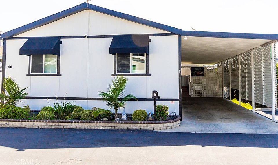 Immaculate three bedroom mobile home in Hacienda Park! An open floor plan, 4 ceiling fans, wood window shutters, privacy panels, spacious kitchen with lots of cupboard space and pull out shelves, and separate laundry room. This is an end unit with no one at one side. These are some of the attractions of this 55 + home nestled in north Orange County. The 3rd bedroom can be used as a den, office or exercise room A cozy and inviting side patio for your morning coffee or afternoon socializing. The master suite is separated at one side of the property.